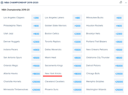 1. The most shocking thing about this is the Knicks don’t have the worst title odds