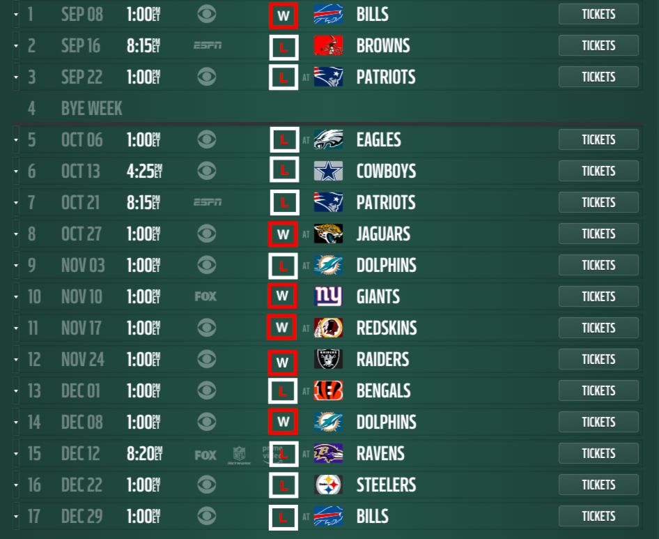 The feeling around around the Jets this year is that they have the perfect amount of young talent, mixed with a veteran presence to make them a competitive football team. Playoff aspirations perhaps if everything goes well. But this is the same narrative I’ve been hearing my entire life when it comes to the Jets, and I’ll believe it when I see it. I will admit the ceiling this year is higher than it has been in past years, but I am skeptical they will reach it. After taking a quick look at their schedule this was my gut reaction: